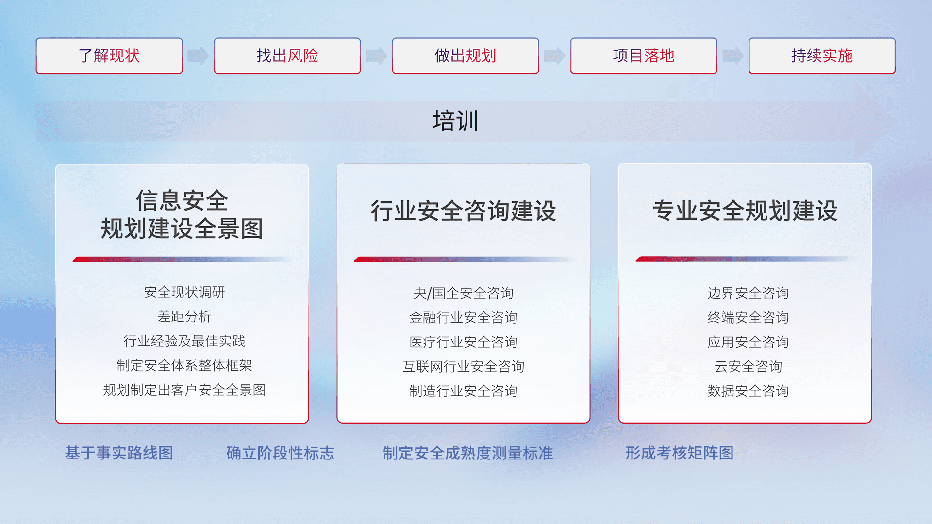 梳理客户信息安全现状调研、、、差距分析结果,,结合行业先进经验及最佳实践,,,制订客户的信息安全管控体系总结架构,,,,最终形成一个完整的客户信息安全规划与建设的全景图。。。