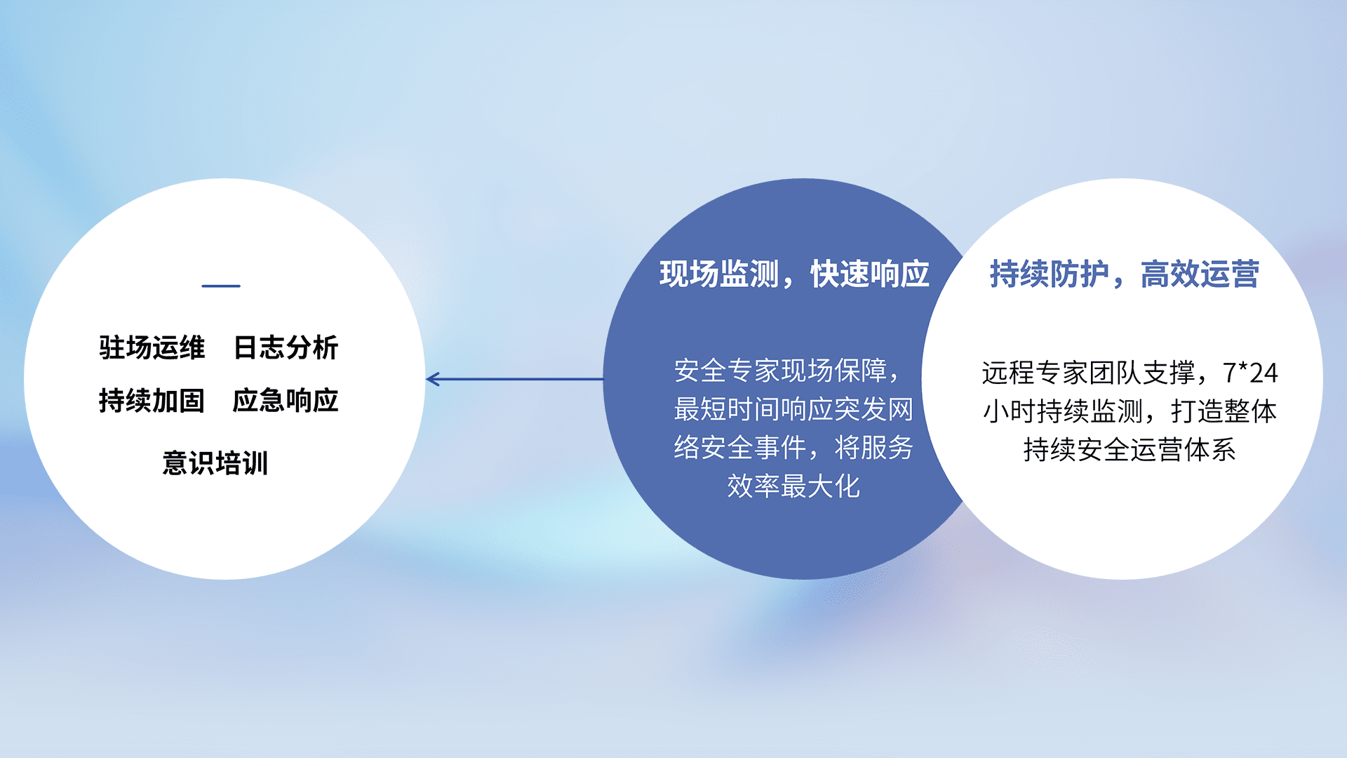 针对客户行业特性,,,,提供专属的一站式安全管理服务,,,,帮助客户全面感知网络空间威胁,,,通过安全专家的线上、、线下防护支持,,实现风险闭环,,,,将安全保障常态化,,,,为客户打造常态化安全运维运营服务。。